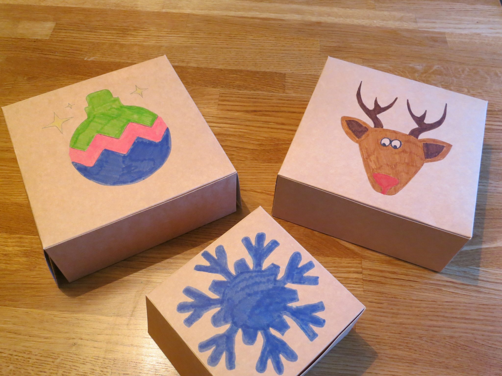 Cadeautjes krijgen is leuk, cadeautjes geven is minstens even plezierig. Niel en ik maakten daarom in het kerstweekend vriendschapsharten om cadeau te geven. Hij deed hierbij het meeste werk en maakte dan ook nog eens mooi versierde dozen.