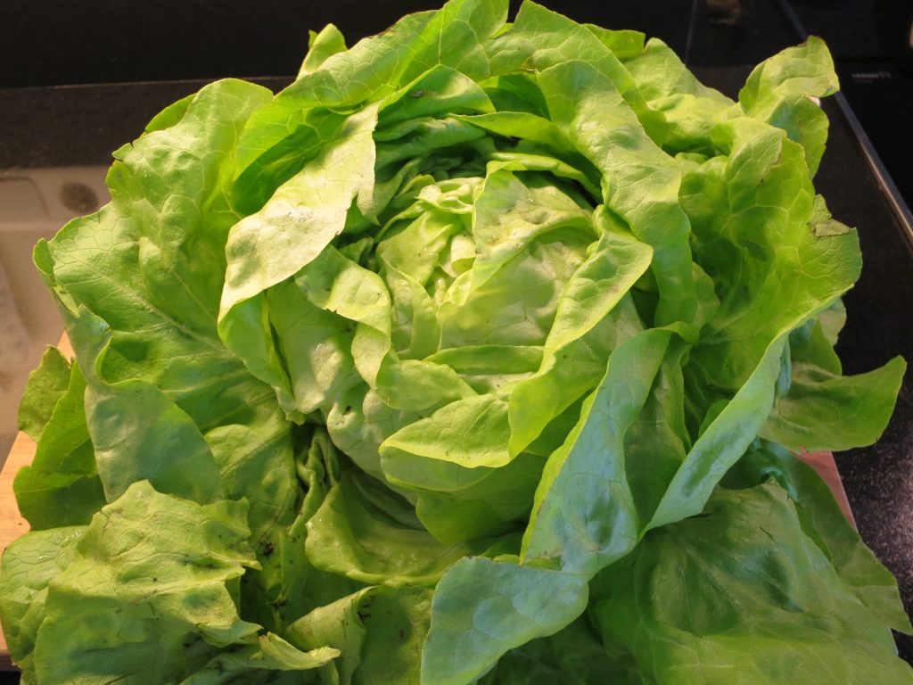 Een tweetal weken geleden schreef Bavo van De Kijfelaar, de bioboerderij waar we via Voedselteams onze groenten en fruit kopen, in zijn wekelijkse mail over ‘de paradox van de bioboer’. Na de extreme droogte van mei en juni groeit alles nu snel en kan er een massa sla geoogst worden. Maar veel klanten zijn momenteel met vakantie… Ik ging in op de oproep aan wie thuis is om veel sla te eten en bestelde, behalve sla om meteen op het menu te zetten, drie extra kroppen om soep te maken. Er zaten drie prachtexemplaren in ons pakket: