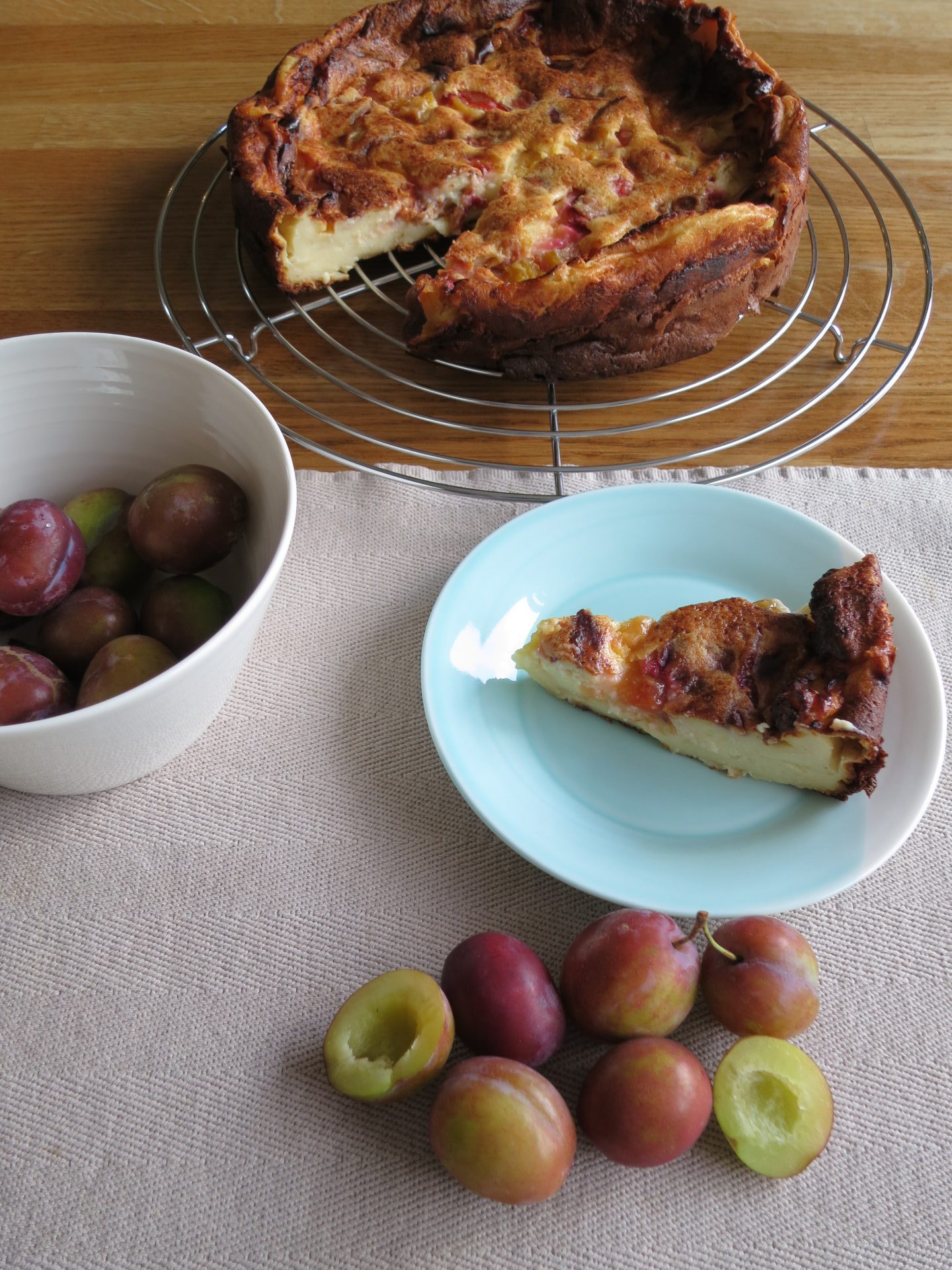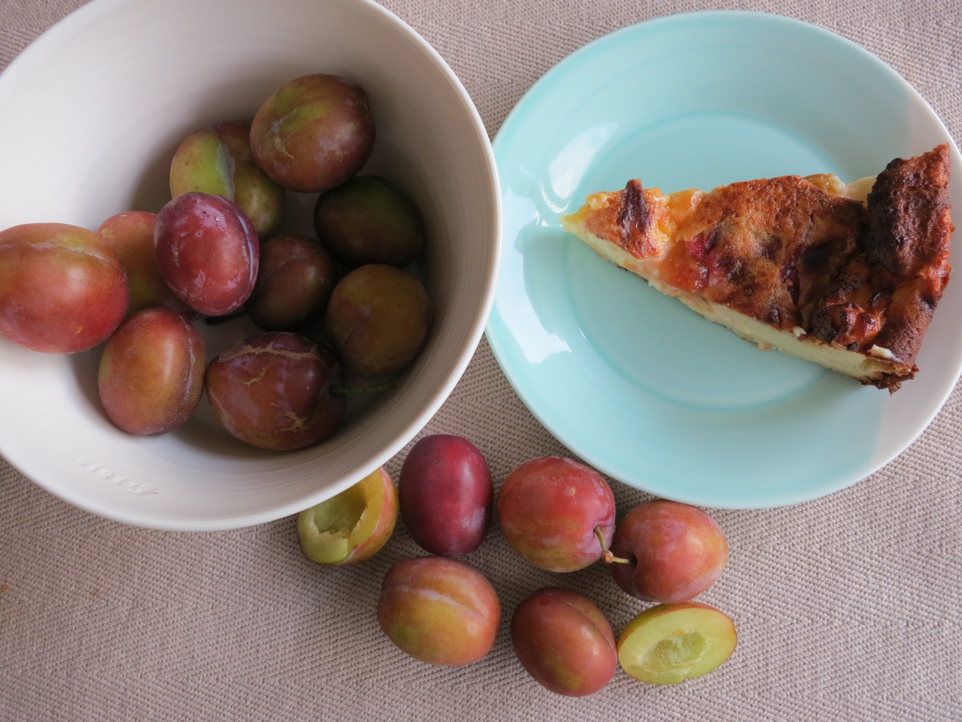 Van een voedselteam collega-vrijwilliger kreeg ik pruimen, vers van de boom gevallen en opgeraapt, heerlijk! De pruimen die heel erg rijp waren of lichtjes geblutst, heb ik verwerkt in een Bretoense far. Dit gebak uit Bretagne lijkt op wat wij flantaart noemen en wordt vaak gemaakt met rozijnen of gedroogde pruimen die eerst in rum geweekt worden. Zoals met veel traditioneel gebak, maakt iedereen er zijn eigen versie van. Er staat een recept in mijn boekje met Bretoense dessertrecepten, ook online is er heel wat te vinden. Ik geef jullie hier mijn versie, met verse pruimen en zonder rum: recept far met verse pruimen.
