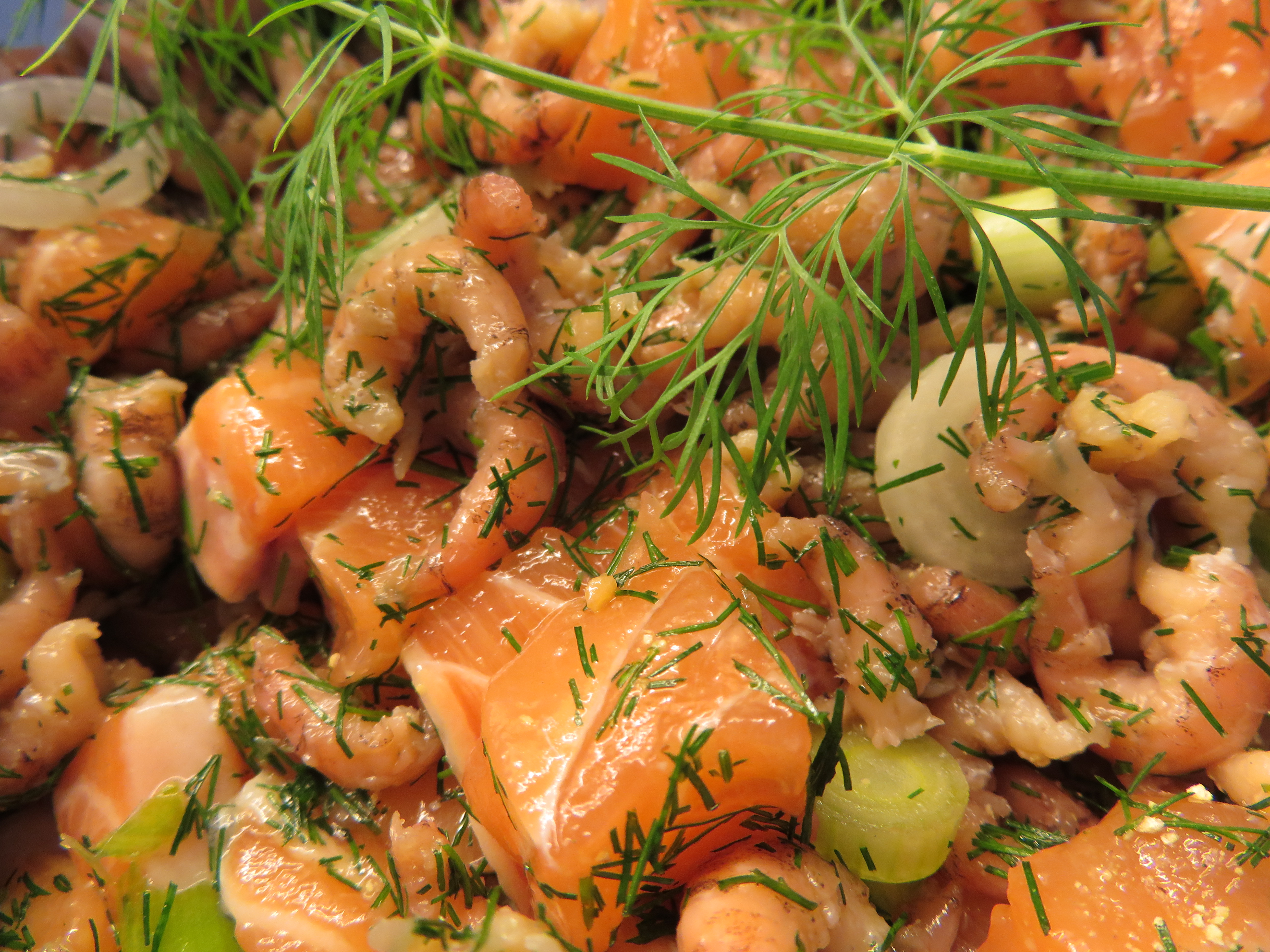 Een heel klein potje zaadjes groeide – overgeplant in een grote bloempot – uit tot een heus dille-bos op de vensterbank van Niel. Tijd dus voor gerechtjes met dille! Warme komkommer met dille is lekker, net als een eierslaatje met dille voor op de boterham. Daarmee was de dille nog niet helemaal opgegeten. We vonden een recept voor een zalmquiche met dille en garnalen. Overheerlijk, ook nog de dag nadien!