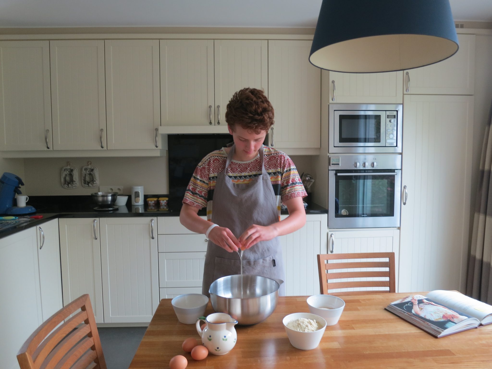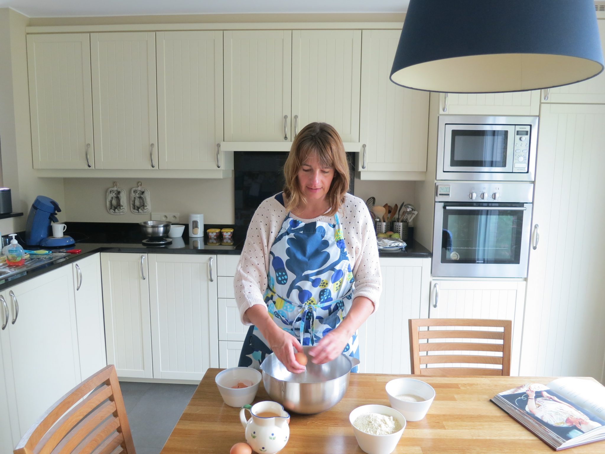 Mijn naam is Karin, ik woon in België in de buurt van Antwerpen. Ongeveer vijfentwintig jaar geleden begon ik desserten te maken. In het begin waren het heel simpele cakes, later probeerde ik moeilijkere recepten. Na een paar jaar begon ik ook te experimenteren met ovenschotels, pasta’s en vegetarische gerechten. Nu ben ik blij dat onze jongste mijn liefde voor koken deelt, me helpt en de keuken soms van me overneemt.