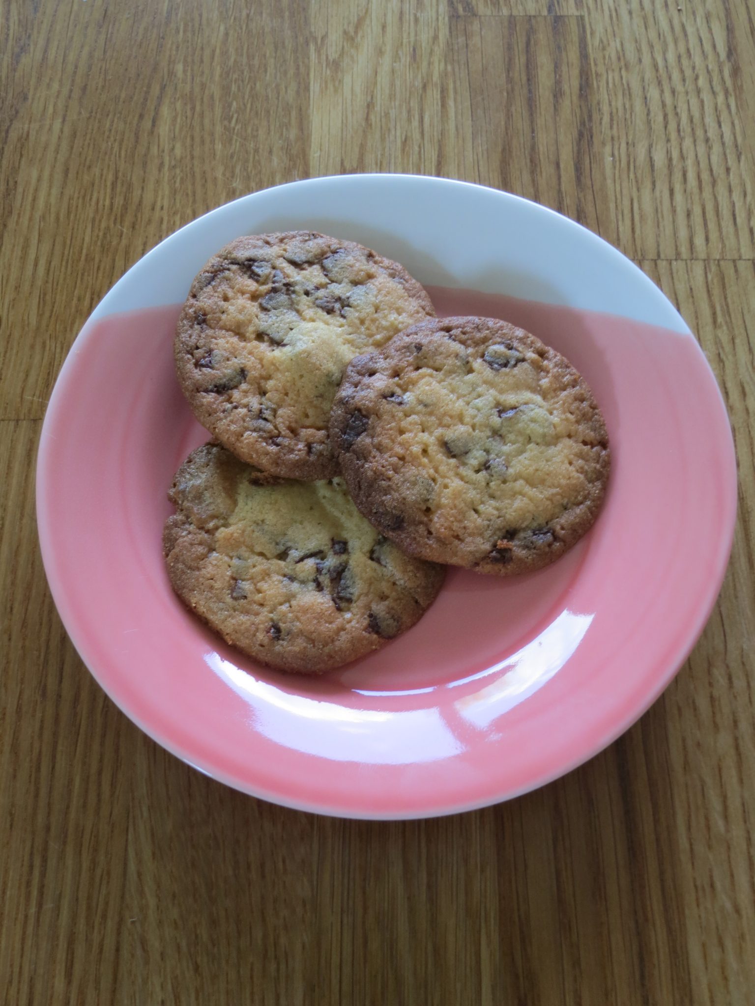 125 gr zachte boter, 90 gr basterdsuiker, 90 gr suiker, 1 zakje vanillesuiker, 125 gr witte choco, 1 ei, 200 gr zelfrijzende bloem, 150 gr donkere chocoladestukjes