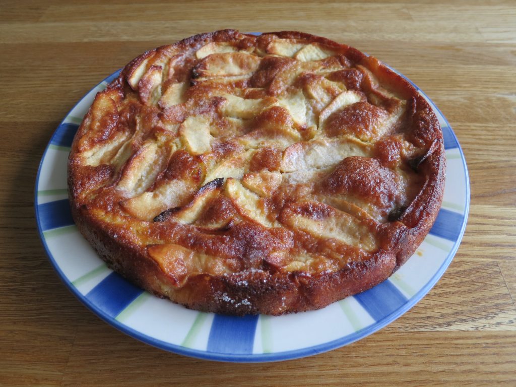 Schil de appelen en snijd ze in plakken. Meng ze voorzichtig onder het beslag en giet het beslag in een beboterde vuurvaste taartschotel.