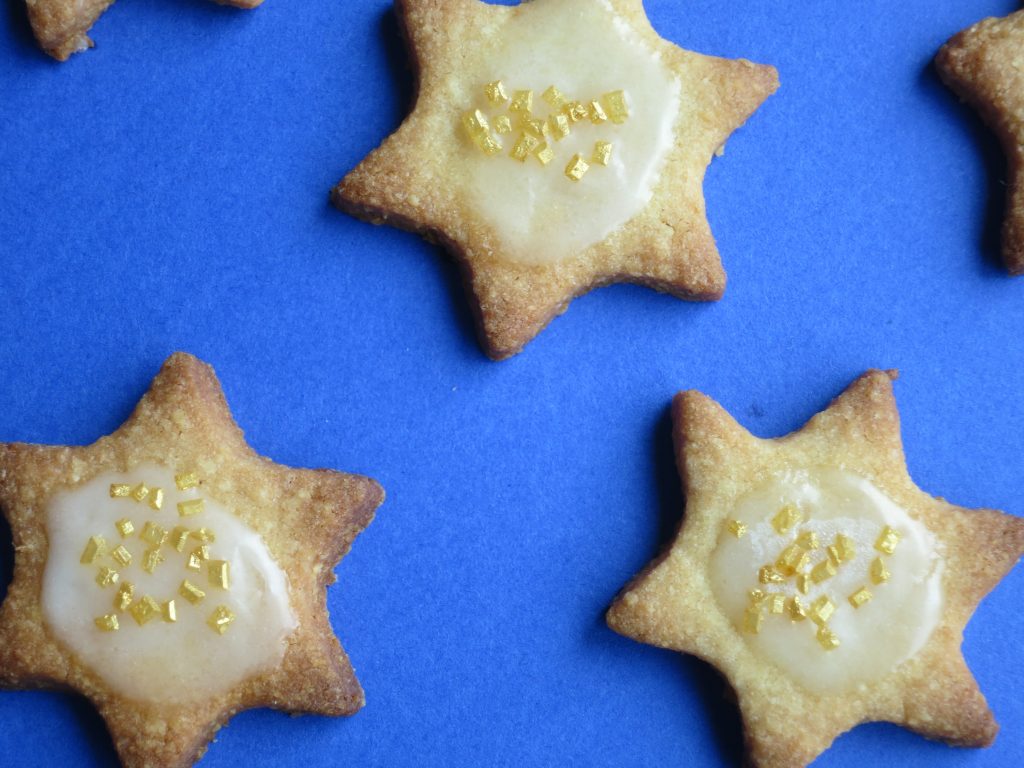 Bestrijk de koekjes met het glazuur. Versier indien gewenst met discobolletjes, suikerpareltjes, confettischijfjes,…